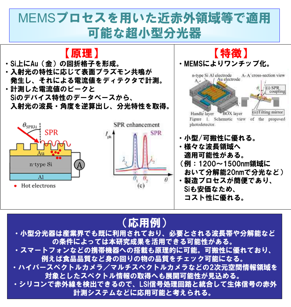 トップページ > 大学の技術・ノウハウ > MEMSプロセスを用いた近赤外領域等で適用可能な超小型分光器