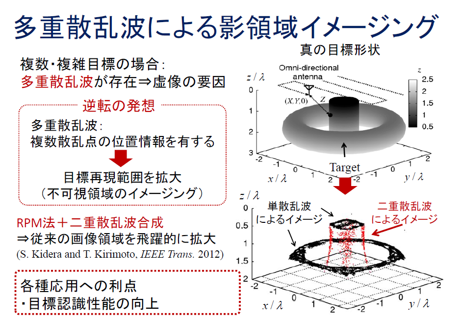 具体的には、RPM法に加えて二重散乱波合成という技術を考案し、一回散乱波では見ることのできなかった領域(影領域)を高速かつ高精度に推定することを可能にしました。